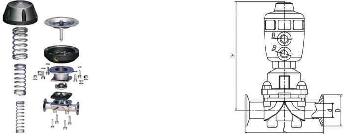 衛生不銹鋼隔膜閥可安裝于任何位置,介質流向對閥門開閉不影響結構緊湊,氣動隔膜閥適用 于狹小的空間多種表面拋光,沒有死角可自動排空。