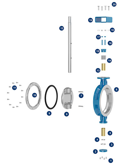 2、防靜電:由于閥座采用聚四氟乙烯等非金屬材料,致使蝶板與閥座在啟閉過程中會產(chǎn)生靜電,靜電積累會產(chǎn)生安全隱患,在結(jié)構(gòu)上采用限位套結(jié)構(gòu)將蝶板上的靜電通過限位套傳遞到閥體上,同時在閥體上設(shè)置防靜電螺栓與地面接觸,從而達(dá)到消除靜電積累的目的。
