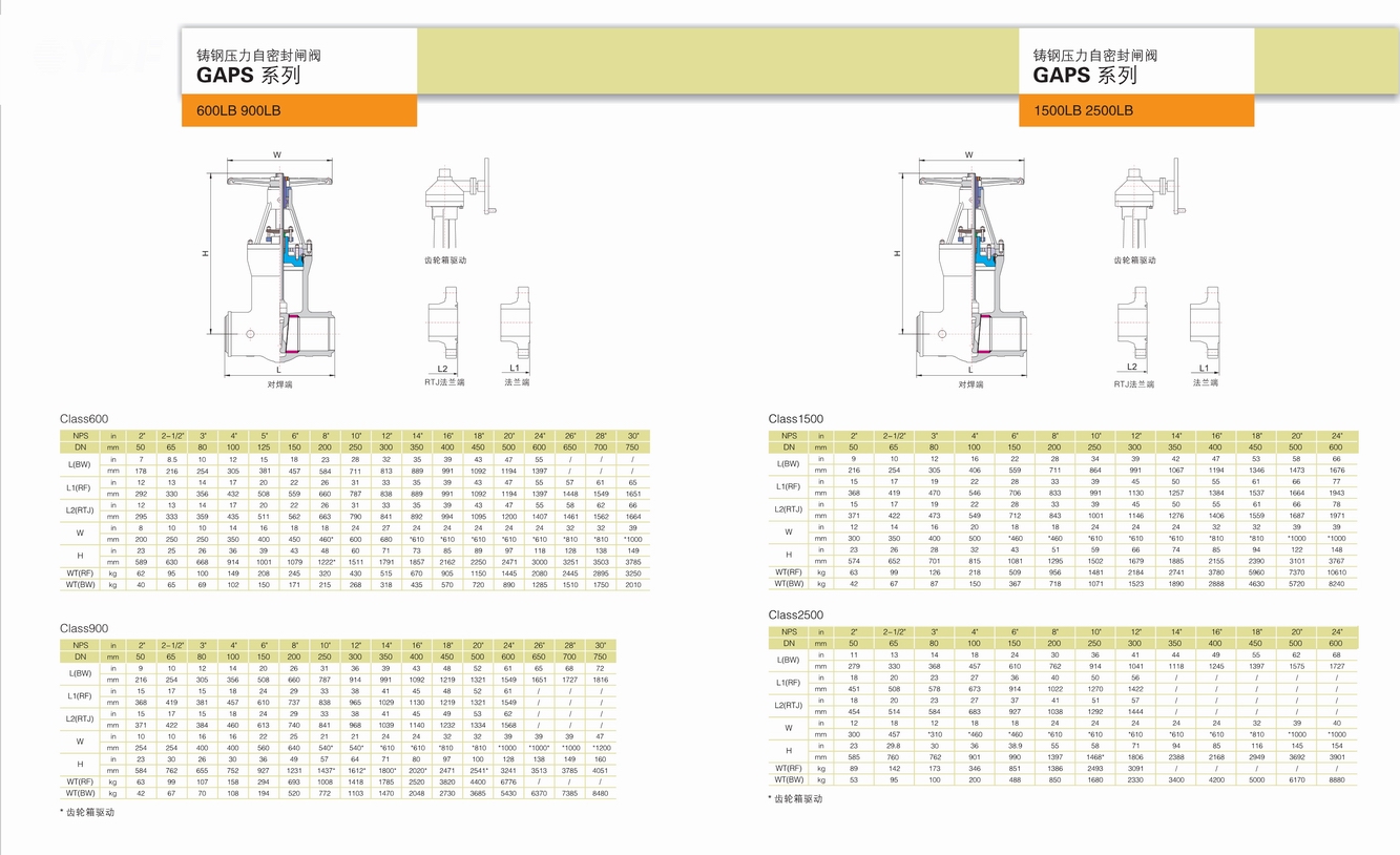 進口壓力自密封閘閥按照API 600,ASME B16.34標準設計制造并按照API 598標準進行壓力試驗. 并且該系列閥門獲得ISO 15848-1TA Luft認證。可滿足旁通設計,雙填料帶隔環設計。