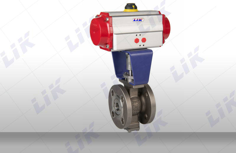 進口氣動對夾式V型球閥是一種直角回轉的高級控制閥,其主要作用作調節閥使用,也可作開關閥使用。V型閥芯設計成帶有特殊形狀的V型缺口,所以具有很大的剪切力及自潔功能,尤其適用于含纖維或有微小固體顆粒狀的介質的控制