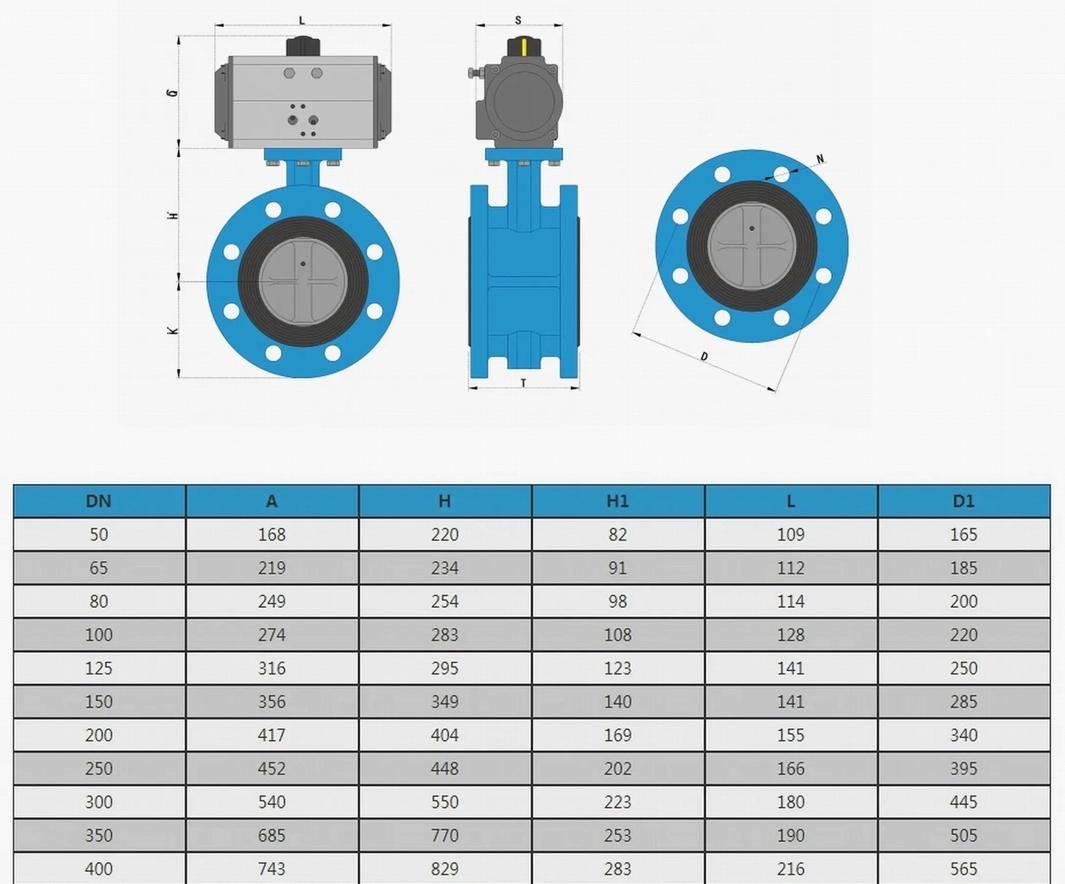 進口氣動中線法蘭蝶閥技術參數: