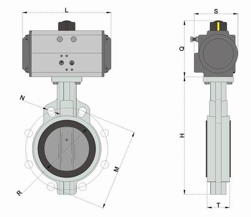 進口氣動對夾式襯膠蝶閥通過氣動執行機構驅動蝶板旋轉,實現流體的快速啟閉與流量調節27。其采用對夾式連接設計,無需額外法蘭,顯著節省安裝空間,尤其適用于緊湊型管道系統(如船舶、化工裝置)56。閥體內壁及蝶板表面襯覆橡膠材料(如NBR、EPDM、FKM),兼具耐腐蝕性與密封性能,可適配腐蝕性介質及衛生要求較高的場景